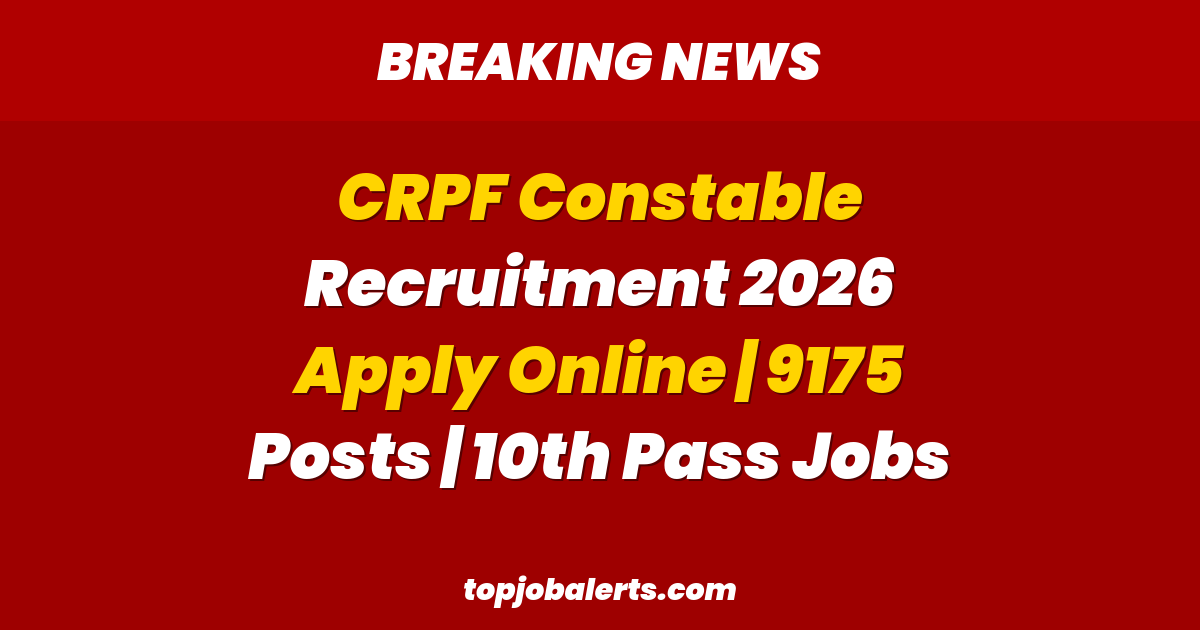 గమనిక: CRPF Constable Recruitment 2026 10వ తరగతి అర్హతతో ప్రభుత్వ ఉద్యోగం పొందడానికి మంచి అవకాశం. ఆసక్తి ఉన్న అభ్యర్థులు చివరి తేదీకి ముందే దరఖాస్తు చేయండి.