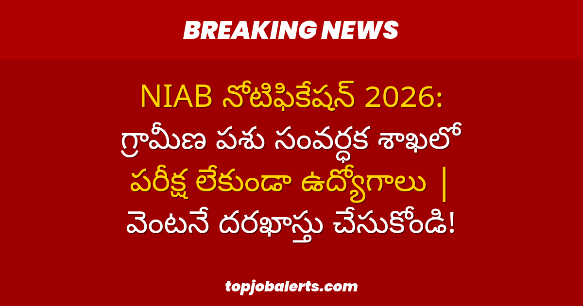 NIAB నోటిఫికేషన్ 2026: గ్రామీణ పశు సంవర్ధక శాఖలో పరీక్ష లేకుండా ఉద్యోగాలు | వెంటనే దరఖాస్తు చేసుకోండి! Charan March 20, 2026