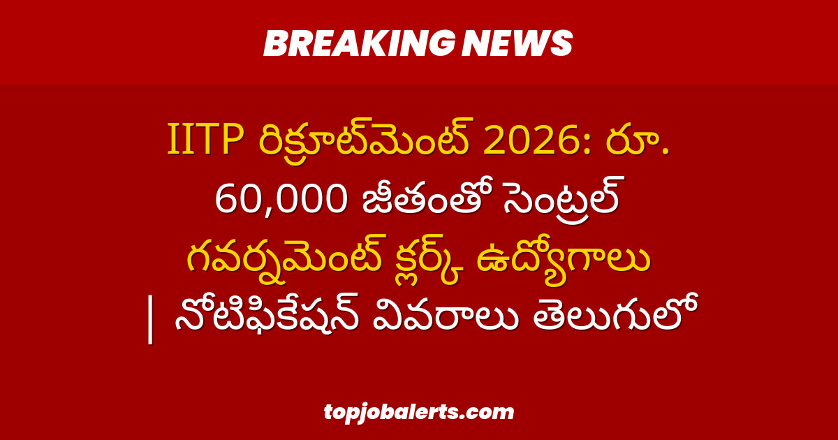 IITP రిక్రూట్మెంట్ 2026: రూ. 60,000 జీతంతో సెంట్రల్ గవర్నమెంట్ క్లర్క్ ఉద్యోగాలు | నోటిఫికేషన్ వివరాలు తెలుగులో Charan March 20, 2026