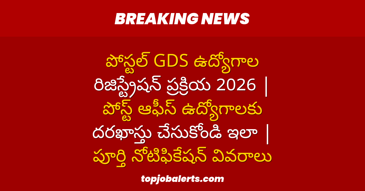 పోస్టల్ GDS ఉద్యోగాల రిజిస్ట్రేషన్ ప్రక్రియ 2026 | పోస్ట్ ఆఫీస్ ఉద్యోగాలకు దరఖాస్తు చేసుకోండి ఇలా | పూర్తి నోటిఫికేషన్ వివరాలు Charan March 20, 2026
