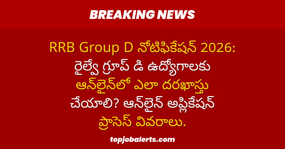 RRB Group D నోటిఫికేషన్ 2026: రైల్వే గ్రూప్ డి ఉద్యోగాలకు ఆన్లైన్లో ఎలా దరఖాస్తు చేయాలి? ఆన్లైన్ అప్లికేషన్ ప్రాసెస్ వివరాలు. Charan March 20, 2026