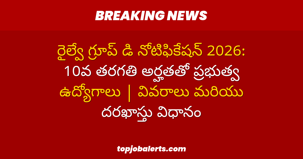 రైల్వే గ్రూప్ డి నోటిఫికేషన్ 2026: 10వ తరగతి అర్హతతో ప్రభుత్వ ఉద్యోగాలు | వివరాలు మరియు దరఖాస్తు విధానం Charan March 20, 2026