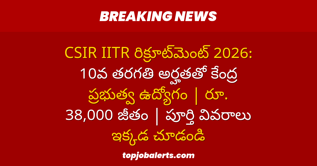 CSIR IITR రిక్రూట్మెంట్ 2026: 10వ తరగతి అర్హతతో కేంద్ర ప్రభుత్వ ఉద్యోగం | రూ. 38,000 జీతం | పూర్తి వివరాలు ఇక్కడ చూడండి Charan March 20, 2026
