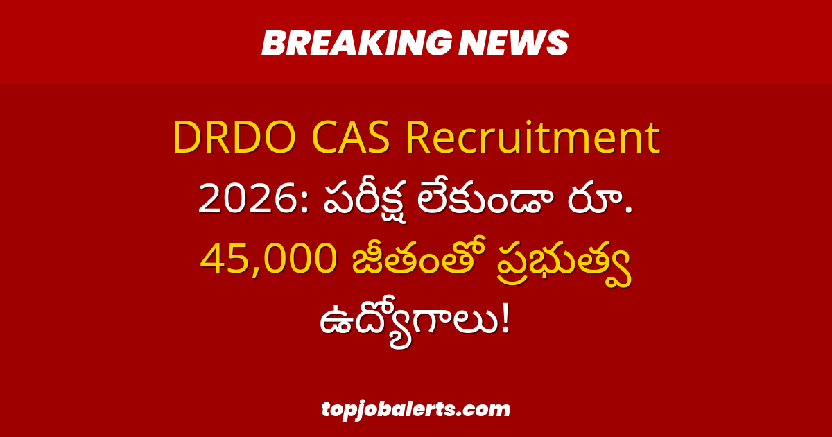 DRDO CAS Recruitment 2026: పరీక్ష లేకుండా రూ. 45,000 జీతంతో ప్రభుత్వ ఉద్యోగాలు! Charan March 20, 2026