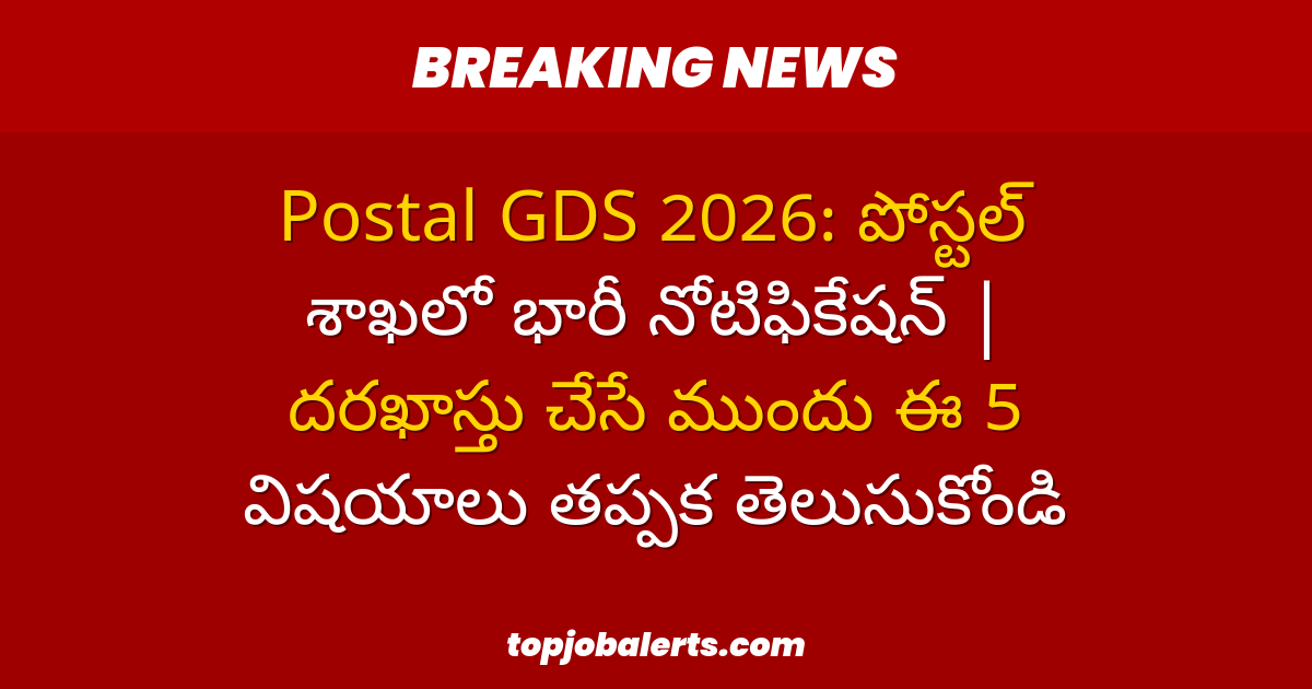 Postal GDS 2026: పోస్టల్ శాఖలో భారీ నోటిఫికేషన్ | దరఖాస్తు చేసే ముందు ఈ 5 విషయాలు తప్పక తెలుసుకోండి Charan March 20, 2026