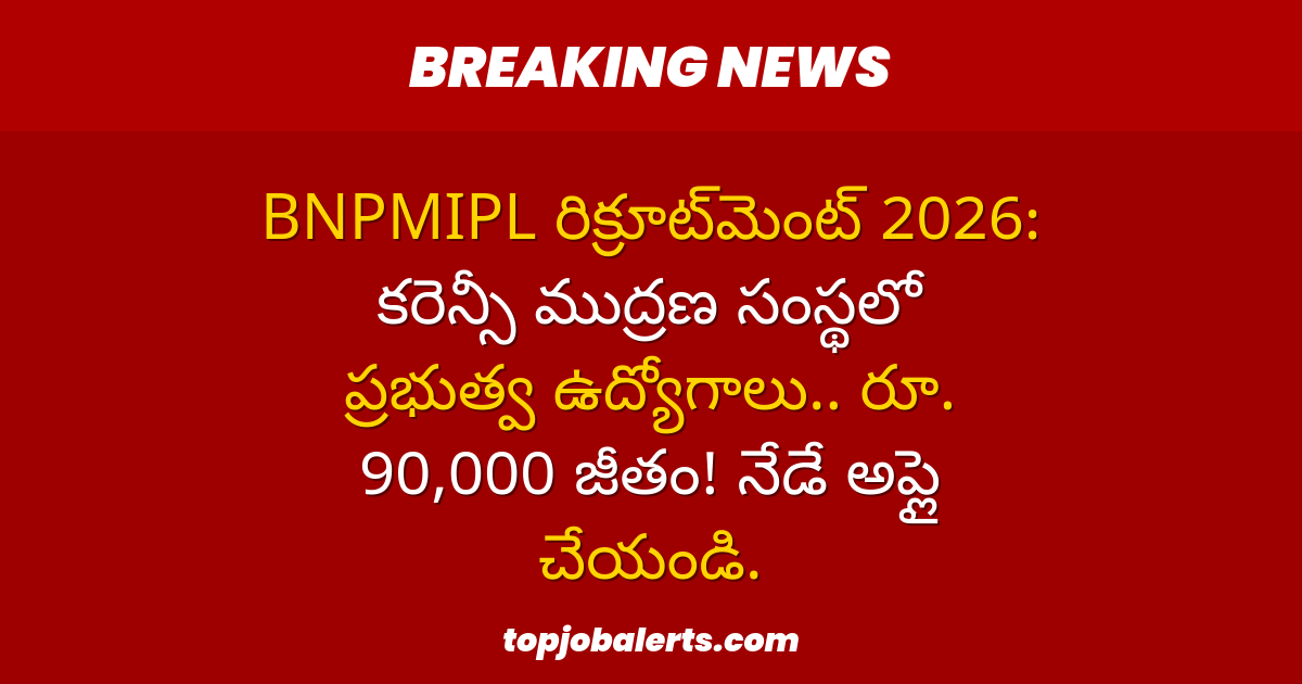 BNPMIPL రిక్రూట్మెంట్ 2026: కరెన్సీ ముద్రణ సంస్థలో ప్రభుత్వ ఉద్యోగాలు.. రూ. 90,000 జీతం! నేడే అప్లై చేయండి. Charan March 20, 2026