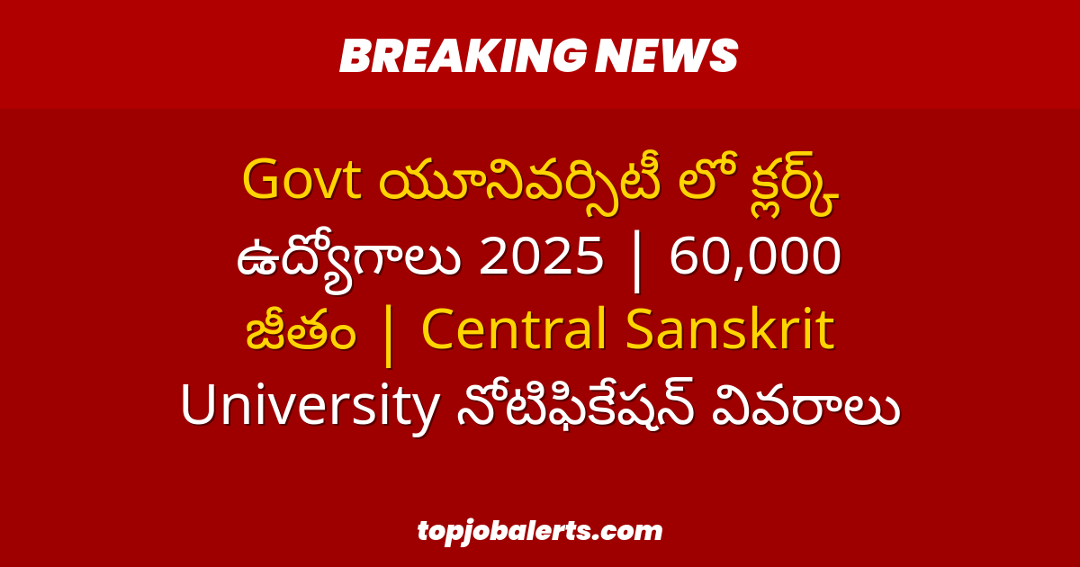Govt యూనివర్సిటీ లో క్లర్క్ ఉద్యోగాలు 2025 | 60,000 జీతం | Central Sanskrit University నోటిఫికేషన్ వివరాలు Charan March 20, 2026