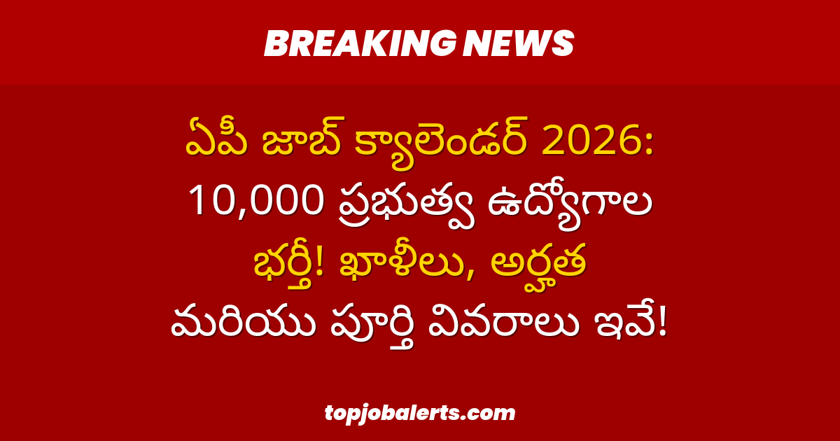 ఏపీ జాబ్ క్యాలెండర్ 2026: 10,000 ప్రభుత్వ ఉద్యోగాల భర్తీ! ఖాళీలు, అర్హత మరియు పూర్తి వివరాలు ఇవే! Charan March 20, 2026