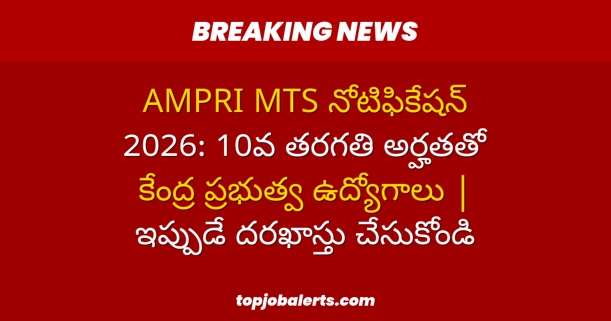 AMPRI MTS నోటిఫికేషన్ 2026: 10వ తరగతి అర్హతతో కేంద్ర ప్రభుత్వ ఉద్యోగాలు | ఇప్పుడే దరఖాస్తు చేసుకోండి Charan March 20, 2026
