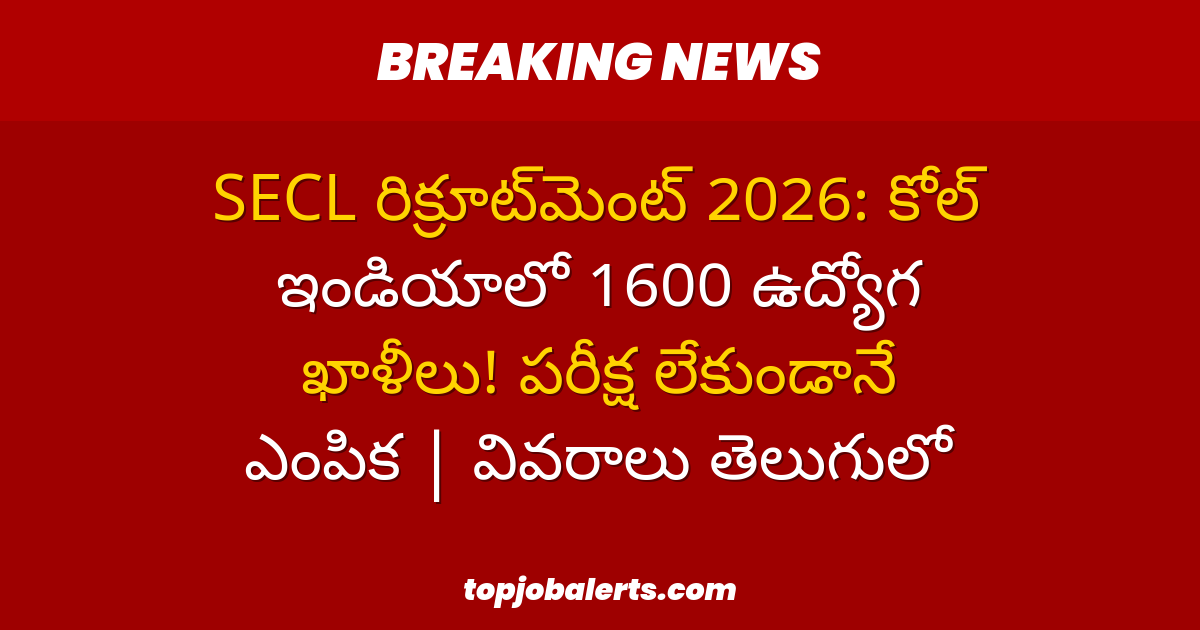 SECL రిక్రూట్మెంట్ 2026: కోల్ ఇండియాలో 1600 ఉద్యోగ ఖాళీలు! పరీక్ష లేకుండానే ఎంపిక | వివరాలు తెలుగులో Charan March 20, 2026