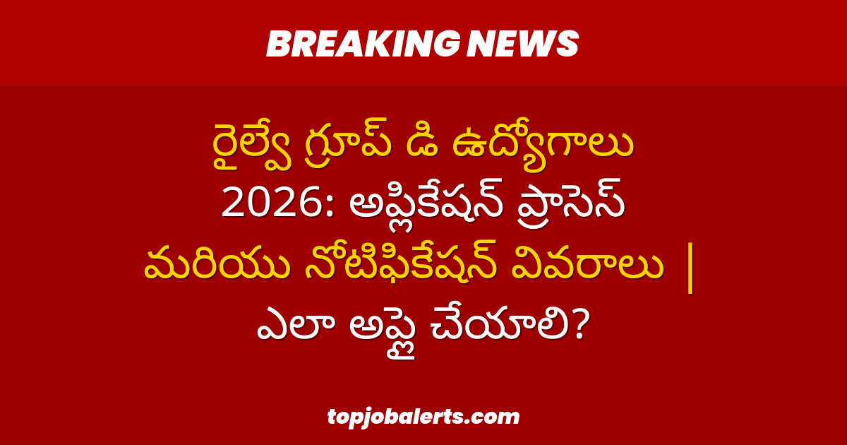 రైల్వే గ్రూప్ డి ఉద్యోగాలు 2026: అప్లికేషన్ ప్రాసెస్ మరియు నోటిఫికేషన్ వివరాలు | ఎలా అప్లై చేయాలి? Charan March 20, 2026