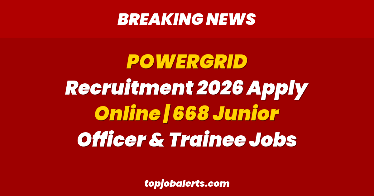 POWERGRID Recruitment 2026 కోసం ఎదురుచూస్తున్న అభ్యర్థులకు భారీ శుభవార్త. Power Grid Corporation of India Limited (POWERGRID) లో Junior Officer Trainee, Diploma Trainee, Junior Technician Trainee పోస్టుల భర్తీకి కొత్త నోటిఫికేషన్ విడుదలైంది.